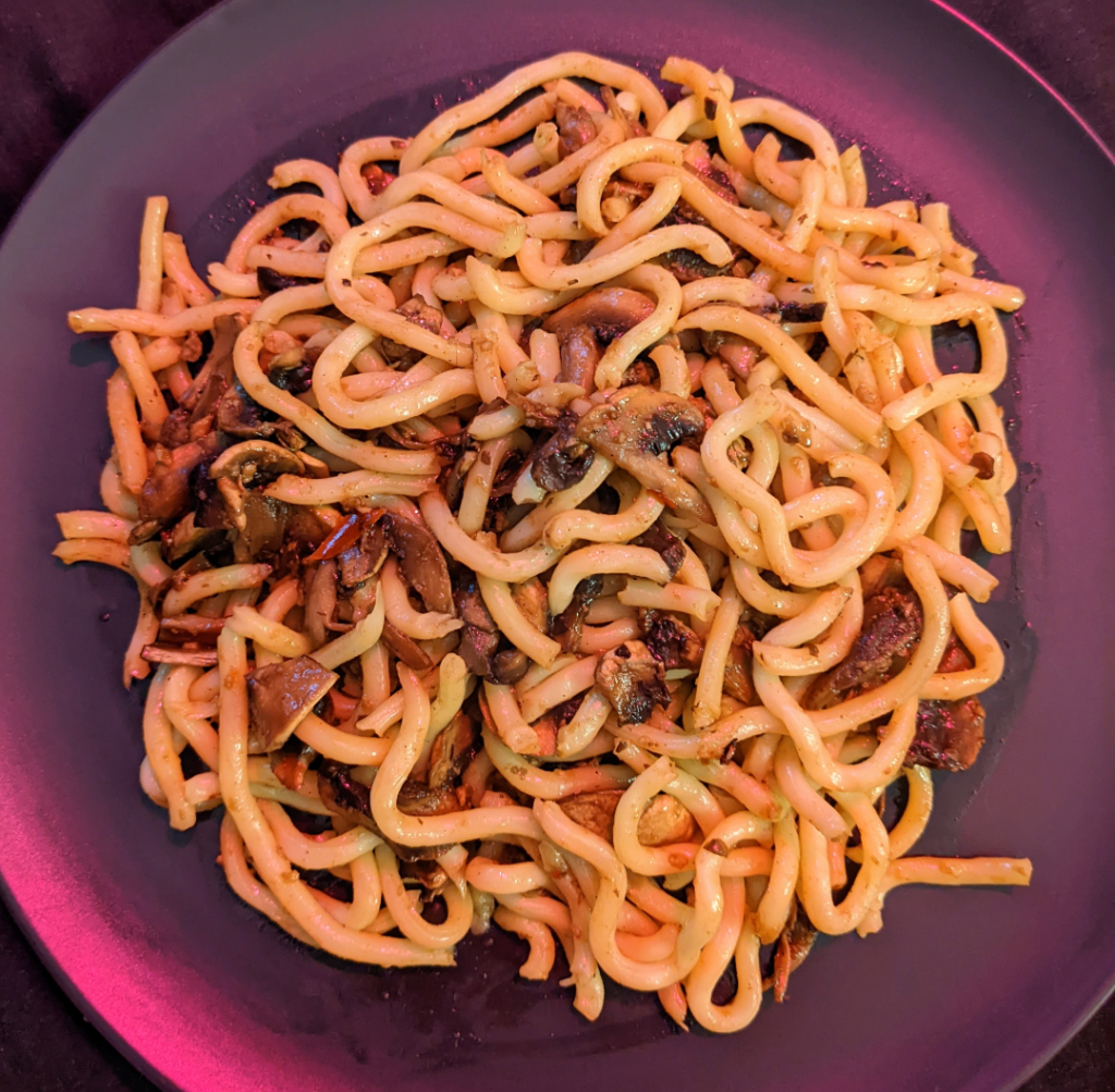 Once your happy with your mushrooms you can add your noodles. Smell and taste your food as you cook, then you can tweak any recipe to your own tastes!
