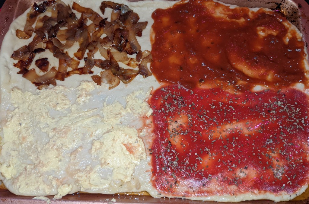 Top with your sauce, for ours I tried 4 different toppings, you don’t need to be this adventurous but I’ll write a recipe for each topping I did in a future post!