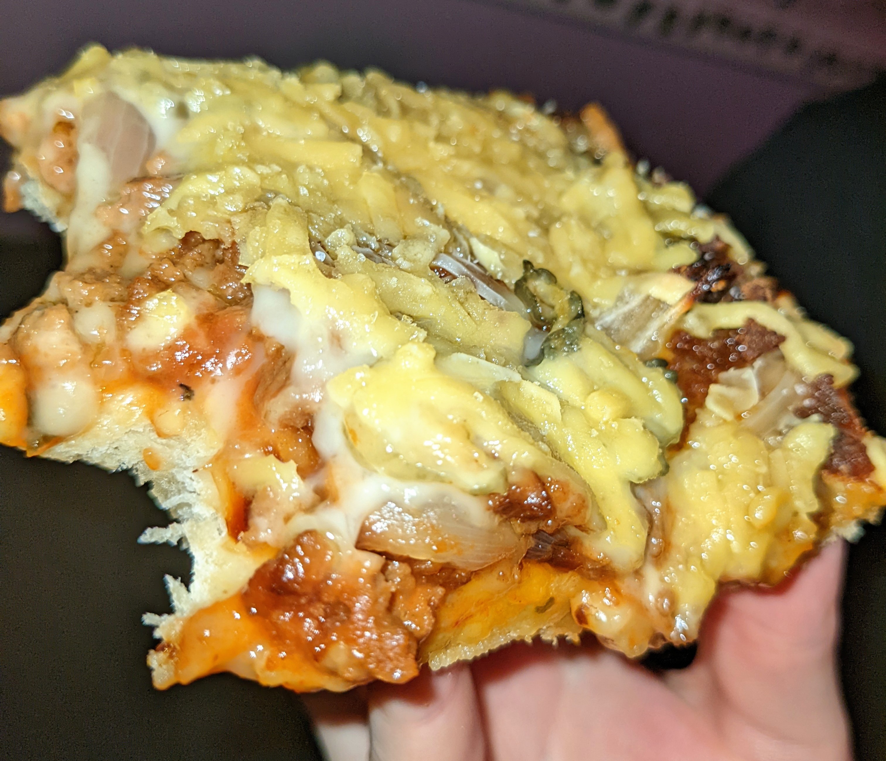 The crust was moist, thick and very comforting, really filling and super delicious. Next time I’m going to try a thinner base to see how it crisps up!