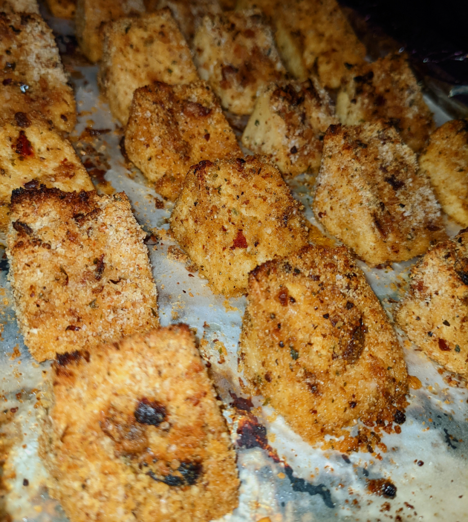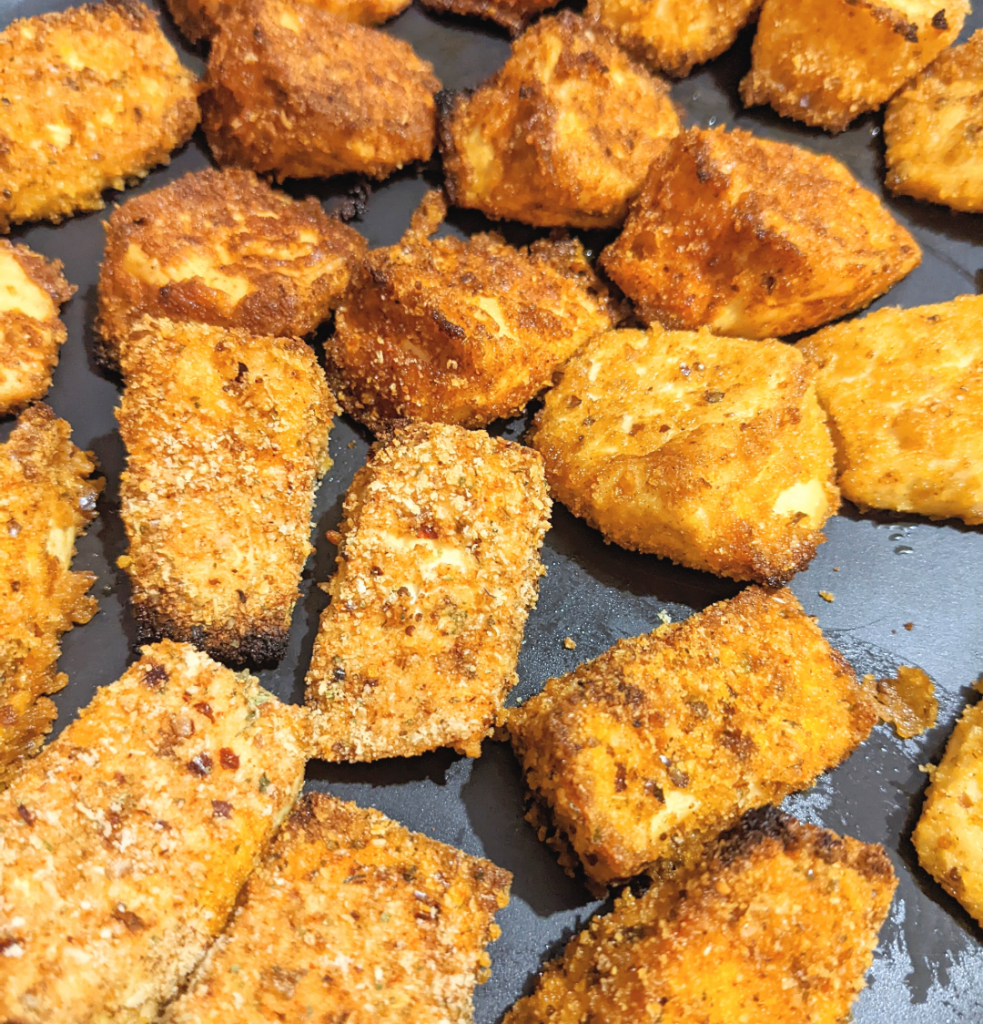 They’re so crispy on the outside and soft and egg like on the inside, easily my favourite type of tofu. Other than the small amount of oil drizzled on top, they’re pretty healthy too! You could omit the oil, I made a half and half batch before and they are just as tasty, but not quite as satisfying!